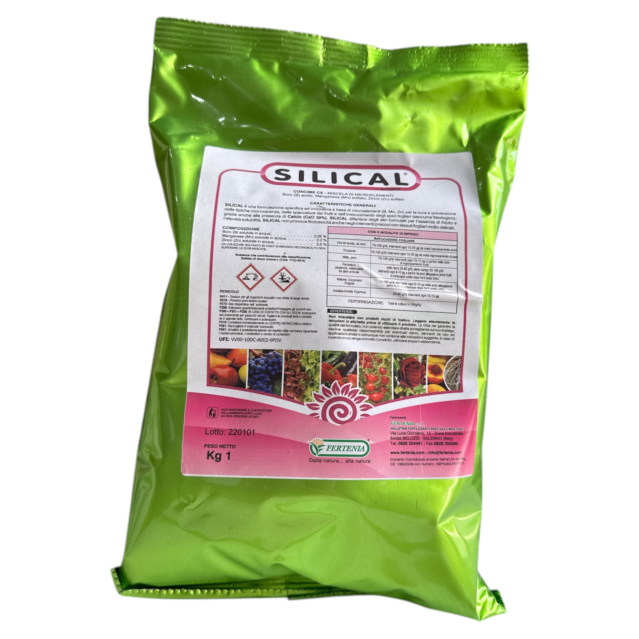 SILICAL differisce dagli altri formulati presenti sul mercato per i seguenti aspetti: • elevata concentrazione di calcio totale 30% • assoluta mancanza di azoto che potrebbe stimolare la crescita vegetativa delle colture e quindi aumentare le richieste di calcio • presenza di silicio organicato, capace di aumentare la consistenza delle pareti cellulari • elevata solubilità. SILICAL non provoca fitotossicità anche negli interventi precoci con tessuti fogliari molto delicati. Ideale per applicazione sia fogliare che radicale (fertirrigazione e idroponia).