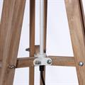 Lampada da terra con struttura a treppiede e gambe in legno, dal forte impatto decorativo. Grazie alla sua particolare conformazione, necessita di uno spazio maggiore rispetto alle lampade da terra tradizionali. Dotata di paralume removibile e pratica accensione tramite interruttore a pedale sul cavo. Lampadina non inclusa.