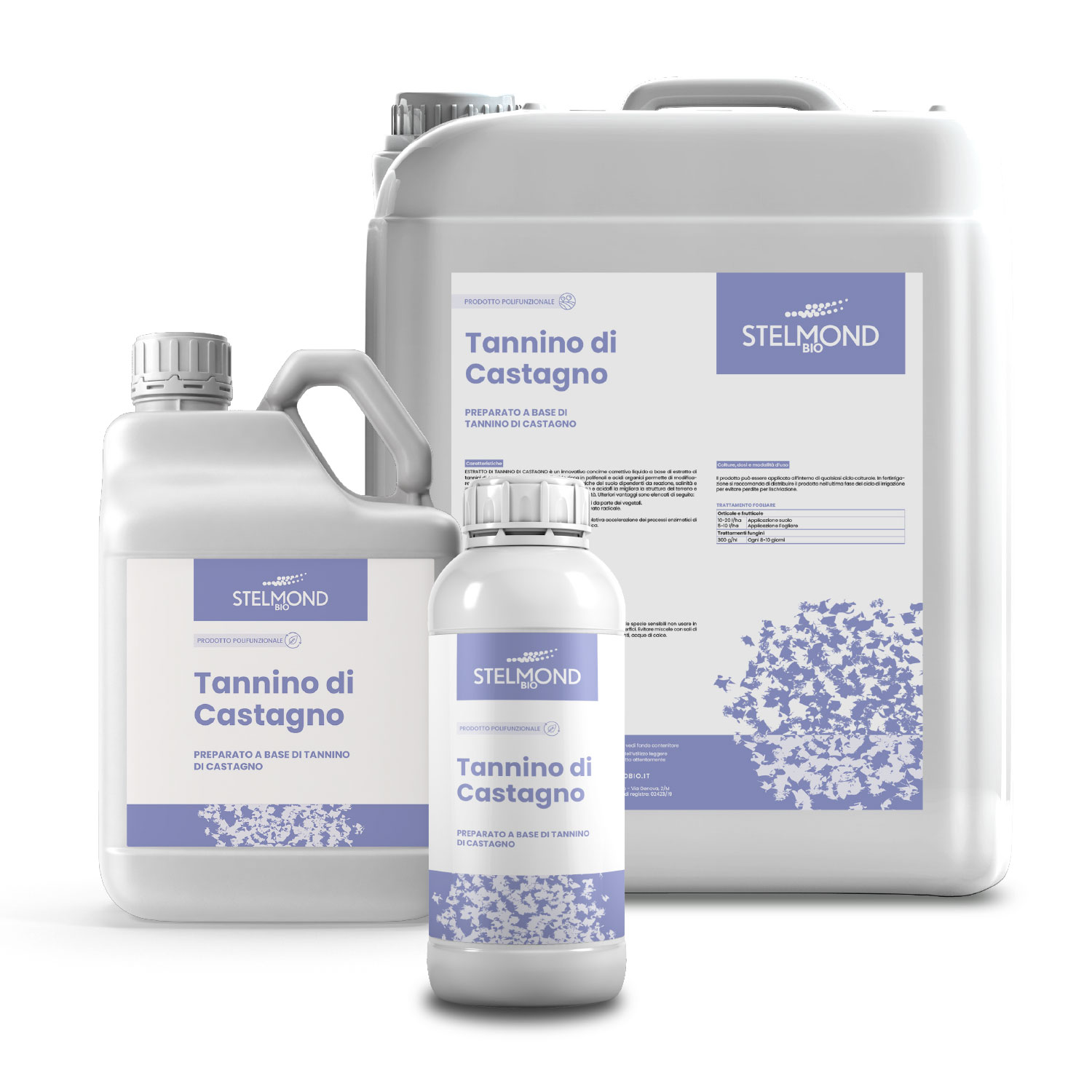 ESTRATTO DI TANNINO DI CASTAGNO è un innovativo concime correttivo liquido a base di estratto di tannini di castagno. La formulazione liquida ricca in polifenoli e acidi organici permette di modificare e migliorare le proprietà chimico fisiche e biologiche del suolo dipendenti da reazione, salinità e tenore in sodio.
