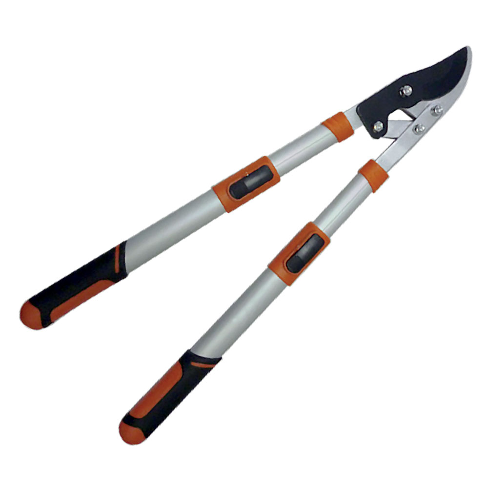 Manici telescopici in alluminio. Impugnatura antiscivolo. Lame al carbonio trattate PTFE, Ø taglio 45 mm. Con controlama dentata
